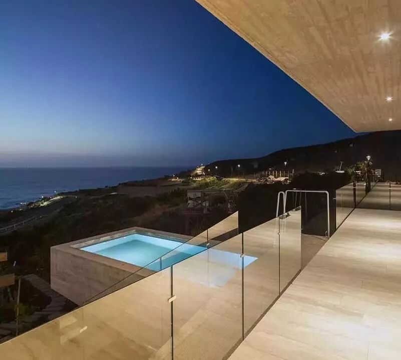结构梁由四面墙支撑,形成一个7米长的悬臂。四面墙壁支撑着整个建筑,并为卧室创造了基础。该住宅还包括一个游泳池,它设置在与房屋本身成直角的另一块混凝土结构中。房间内没有隔墙或柱子,包括一个访问级别的公共区域:客厅、餐厅和厨房。走廊通向家另一端的主卧室。在较低的楼层,包括一个家庭房和额外的卧室。