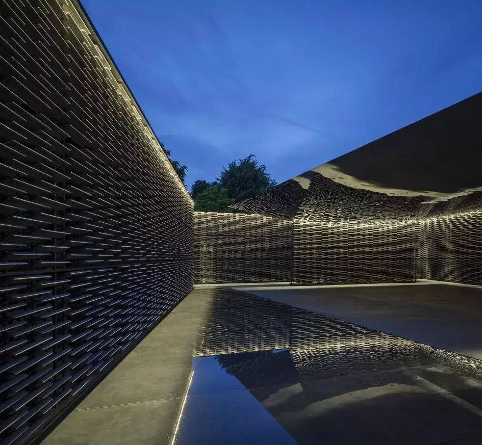以设计激活城市的动态项目而著称的墨西哥设计师Frida Escobedo日前完成了2018年的蛇形展馆项目。借助光线、水与几何的微妙互动,这座围绕庭院而作的设计融合了墨西哥建筑与英国建筑的材料及历史特征,值得一提的是,格林尼治皇家天文台的本初子午线元素也被融入作品当中。