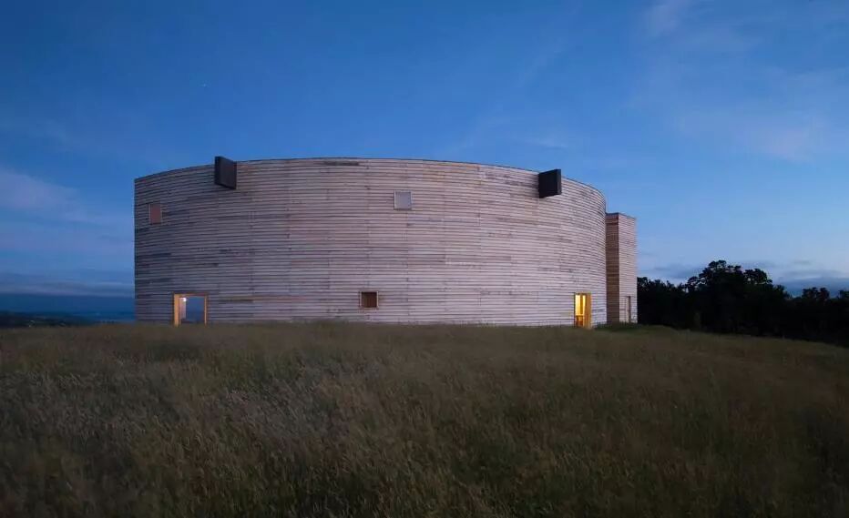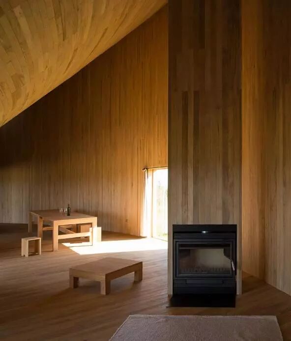 整座体量由当地的木材构成。建筑的结构由45个刚性构架组成的环形阵列定义出来。墙壁和天花板均覆盖以木板,圆锥形的屋顶则覆盖着传统的薄木瓦。