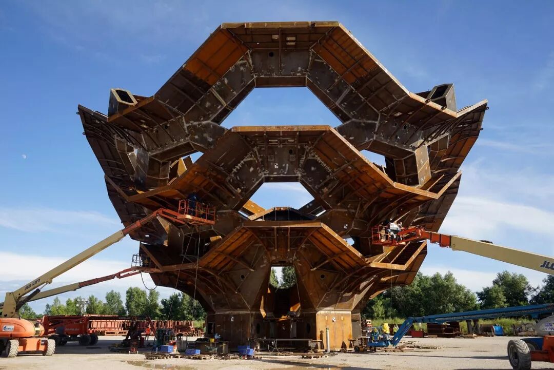 这座蜂窝式结构的建筑由154段楼梯、80个楼梯平台组成,供参观者从不同角度观赏城市风光。该景观3月15日正式向公众开放。