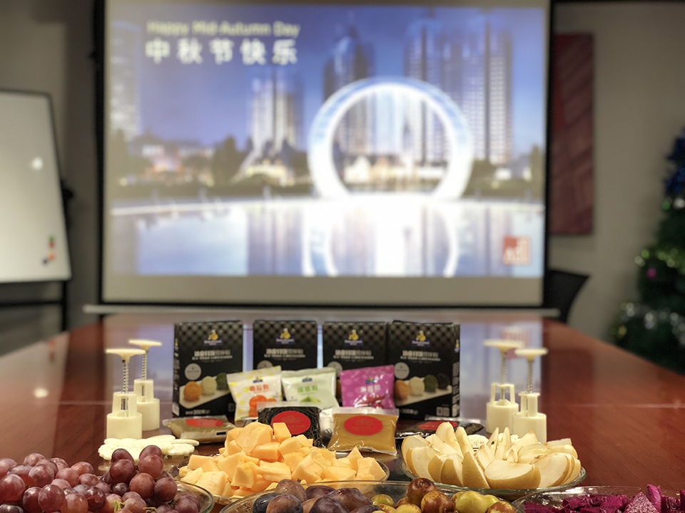 中秋佳节,ADO澳洲艾度举办了手工月饼DIY活动。行政部准备了制作冰皮月饼的材料,有预拌粉、月饼模具等,可以DIY紫薯、南瓜、抹茶等口味的冰皮月饼,大家根据自己的喜好,纷纷开始动手尝试,制作过程中充满了欢声笑语。经过精致细心的纯手工制作,成品看起来让人垂涎欲滴,色香味俱全。大家最后一起品尝了自己亲手做的月饼,满满的成就感。各位同事们收到了公司送给大家的沃尔玛购物卡与精心设计的中秋贺卡,共同度过了一个欢乐团聚的中秋。